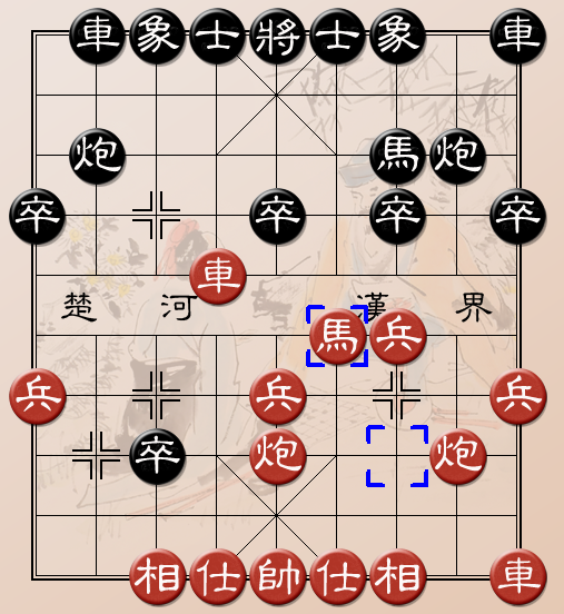 Đen ra xe giữ pháo thì ta phóng nốt con mã cánh phải lên. Hình cờ đến đây quá đẹp. Ta hơi ưu thế chút xíu.
