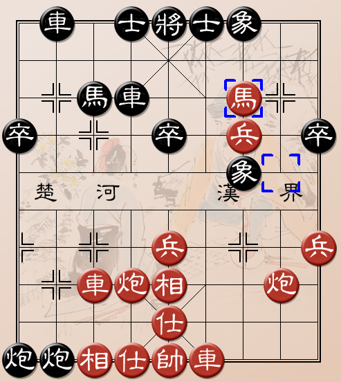 Tiếp theo đen hết bài dĩ nhiên sẽ tìm cách chạy mã hoặc vô xe giữ mã hoặc ăn tốt sang sông phế mã. Ta xét đến biến đen ăn tốt sang sông phế mã. Nếu đen ăn tốt sang sông phế mã thì ta cứ lượm luôn em mã ngay không có gì phải đắn đo cả.