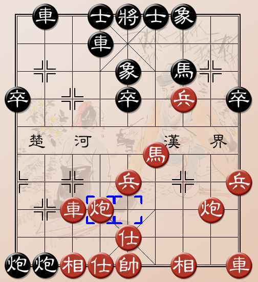Nhìn kĩ lại thì dù đen có 2 pháo 1 xe và 1 tốt cánh trái nhưng lại chẳng có gì uy hiếp nhiều cả. Vì ta có nước thoái xe bắt tốt thì có thể bảo vệ tượng đáy hoặc cũng có thể cho pháo vật sang tốt để tiêu diệt mồng mống gây nguy hiểm. Cho nên đến đây nếu đen liều mình phi pháo xuống đáy thì ta tuyệt đối không ăn mã.