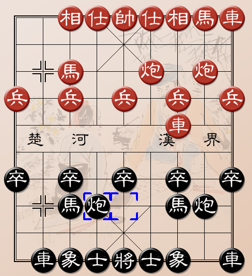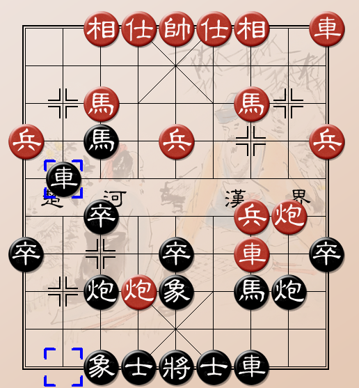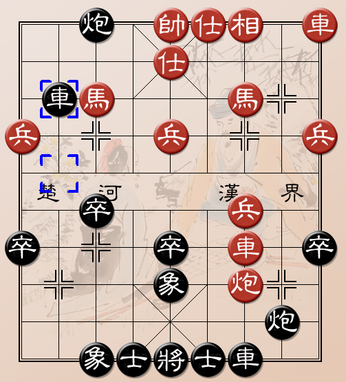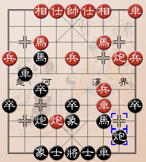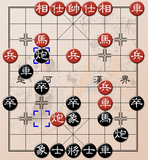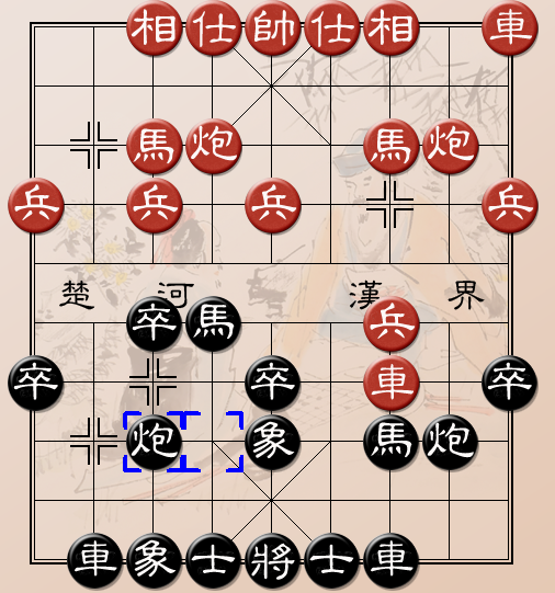 Đến đây đỏ chỉ còn cách cắm pháo bắt mã. Ta thăng xe lên kiểm soát bờ sông của đỏ không cho phép đỏ tương lai nhảy mã lên.