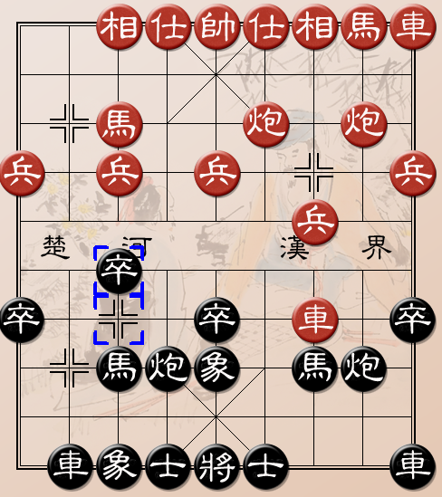 Tiếp theo đỏ thúc tốt lên gia tăng áp lực lên con mã yếu của ta. Ta bình tĩnh cho xe bình vào chân tượng để giữ mã trước đồng thời phục nước thăng pháo bắt chết xe.