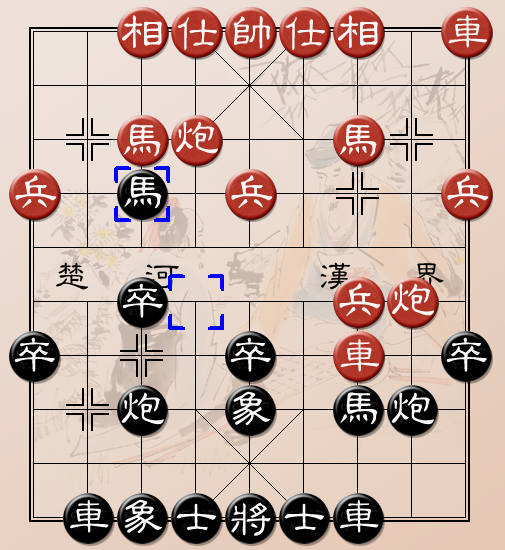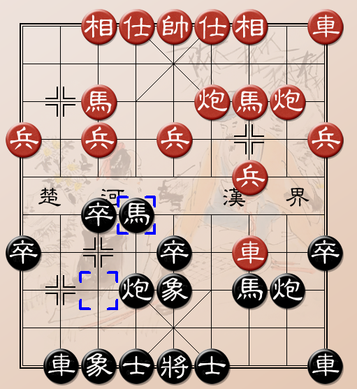 Ở đây đỏ lời một tốt 7 nhưng ta bù lại xuất động nhanh các quân chủ lực. Mã cánh trái rất thông thoáng có thể nhảy lên tìm đường tấn công bất cứ lúc nào. Đến đây đỏ có thể có nhiều biến, nhảy mã lên để xuất động đều chủ lực 2 cánh hoặc lên tượng gia cố phòng thủ trung lộ trước. Ta xét biến đỏ nhảy mã lên. Đương nhiên nếu đỏ nhảy mã lên thì ta lập tức lao mã cánh trái lên hà chứ để đỏ nhảy được mã lên hà thì ta thất thế.