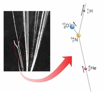 Buồng sương là một buồng hơi ở trạng thái siêu bão hòa, có thể tạo ra các vệt sương đủ to dọc theo đường đi của các hạt mang điện chuyển động mà mắt thường có thể nhìn thấy được. Kết quả phân tích hình ảnh của vết sương rẽ nhánh là bằng chứng giúp ông đi tới kết luận: Trong một số trường hợp, hạt \({}_2^4\text{He}\) bắn phá vào hạt nhân \({}_7^{14}\text{N}\) đã tạo ra hai hạt nhân mới đó là \({}_8^{16}\text{O}\) và \({}_1^\text{H}\).